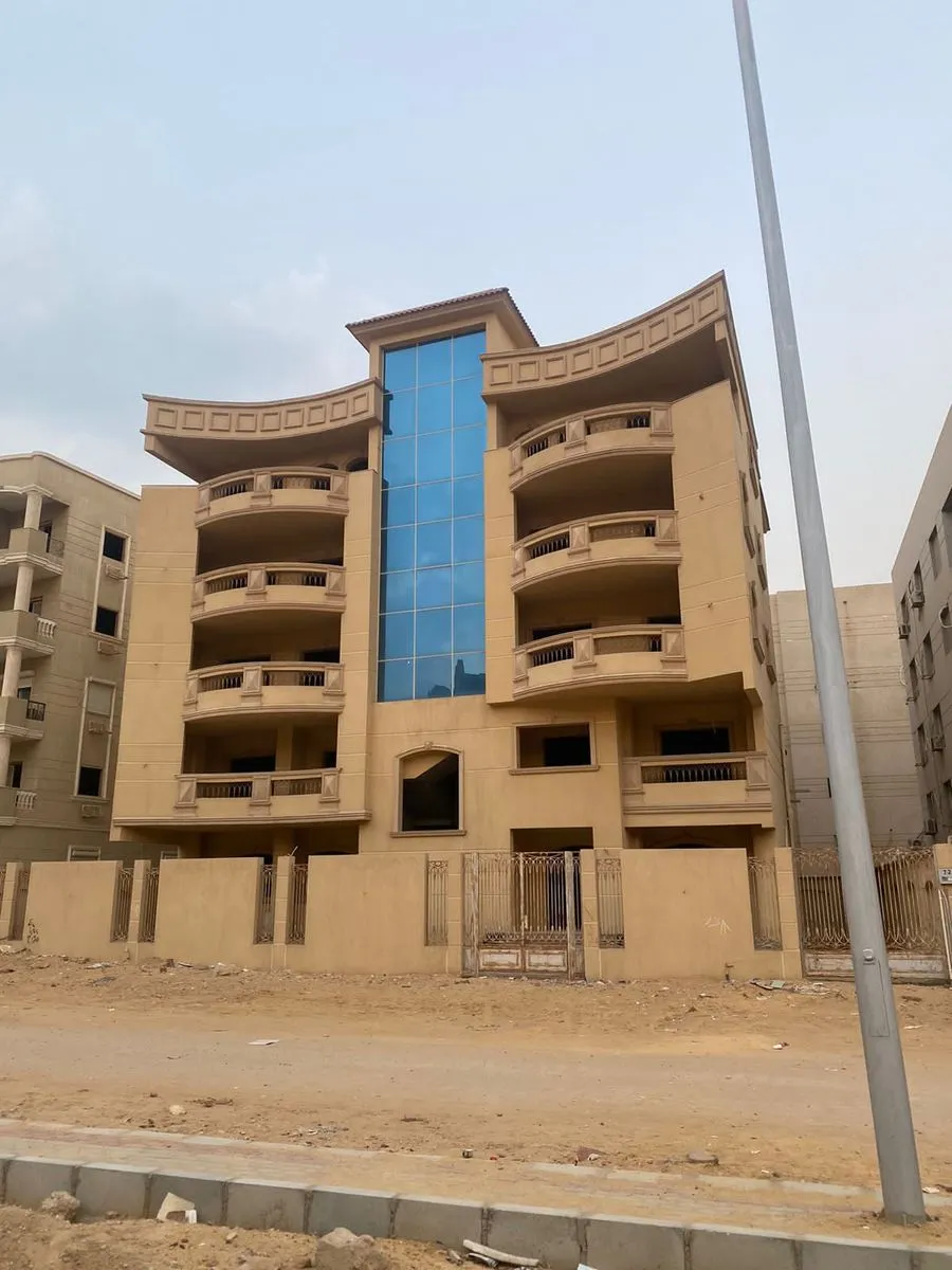 العماره علي شارع اتجاهين و امامها حديقه صغيره وبجانبها حديقه كبيره